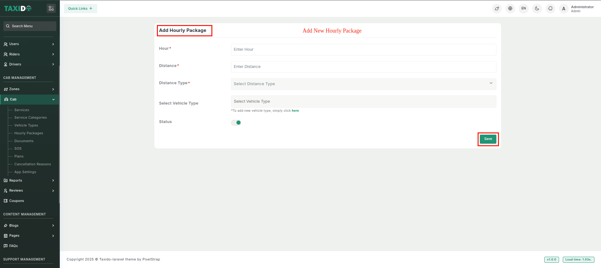 - Go to your admin panel in Laravel, and on the left-hand side menu, click on "Cab" then