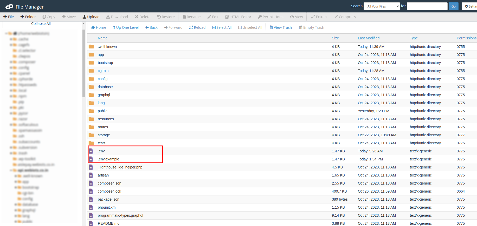 - After creating the MySQL database, go to Taxido_laravel folder from your cPanel file manager and edit .env file.