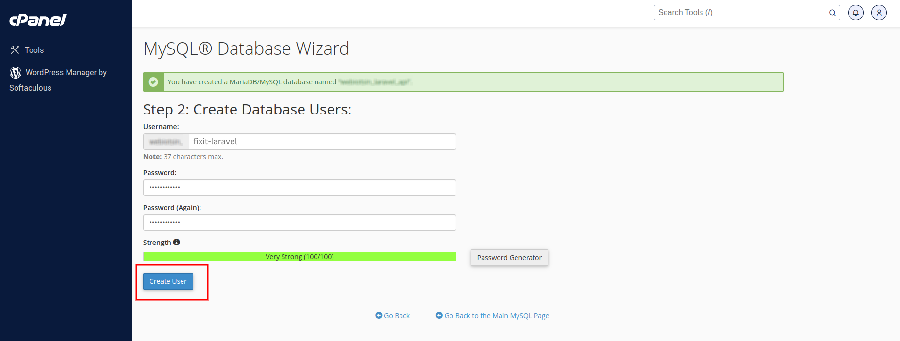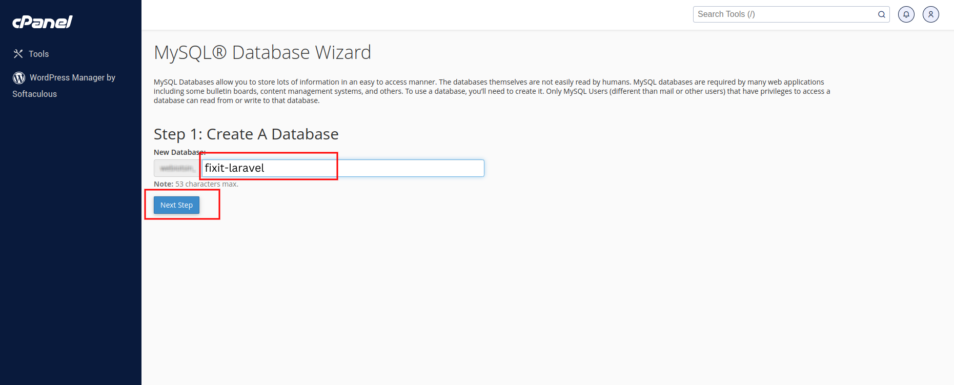 - Now move to cpanel manager and go to > MySQL Database Wizard