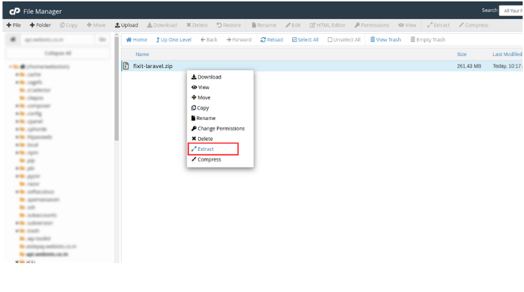 - Upload the Taxido_laravel zip file in the laravel's subdomain (api.your-domain.com).