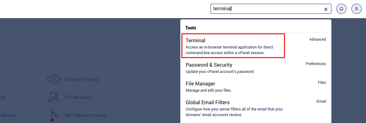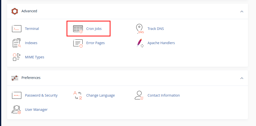 - In the cPanel dashboard, scroll down to the "Advanced" section.