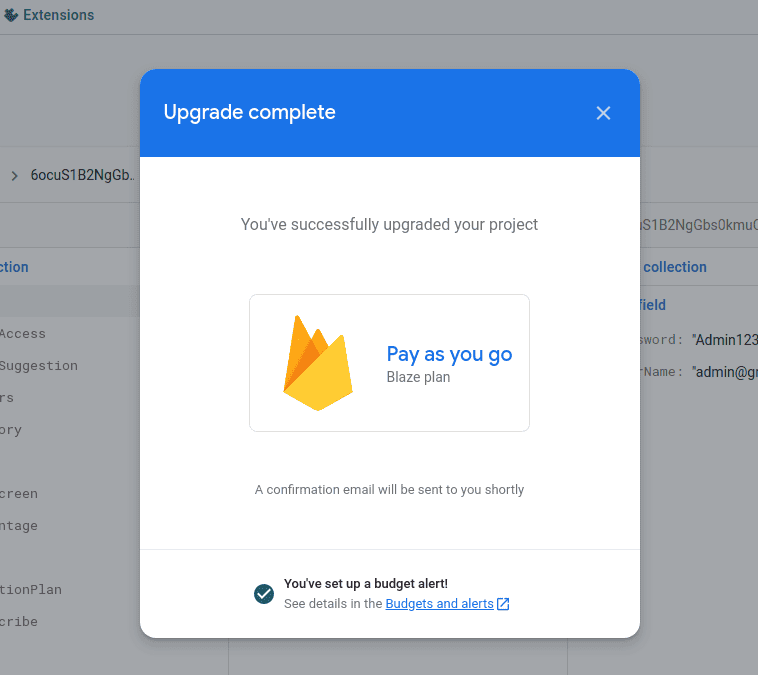 Now go to the Firebase Billing: Firebase Collections.