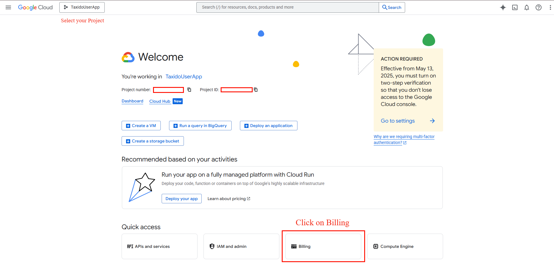 Now go to Google Cloud console and select your project under that click on