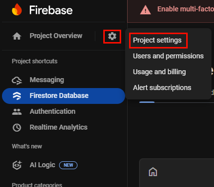- Open Firebase Console