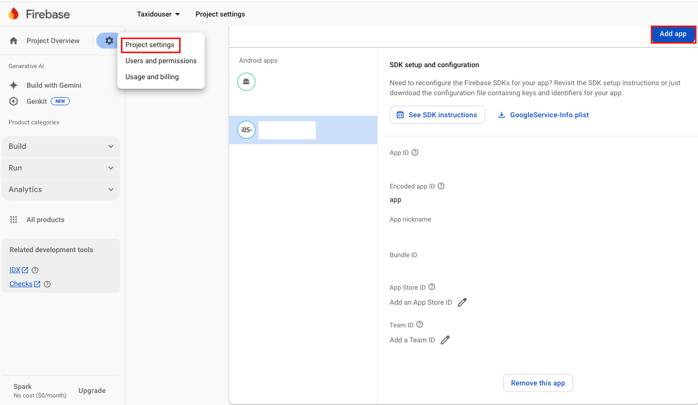 - Navigate to Firebase Dashboard > Project Settings > Select your iOS User APP > Copy the “Encoded App ID” value and