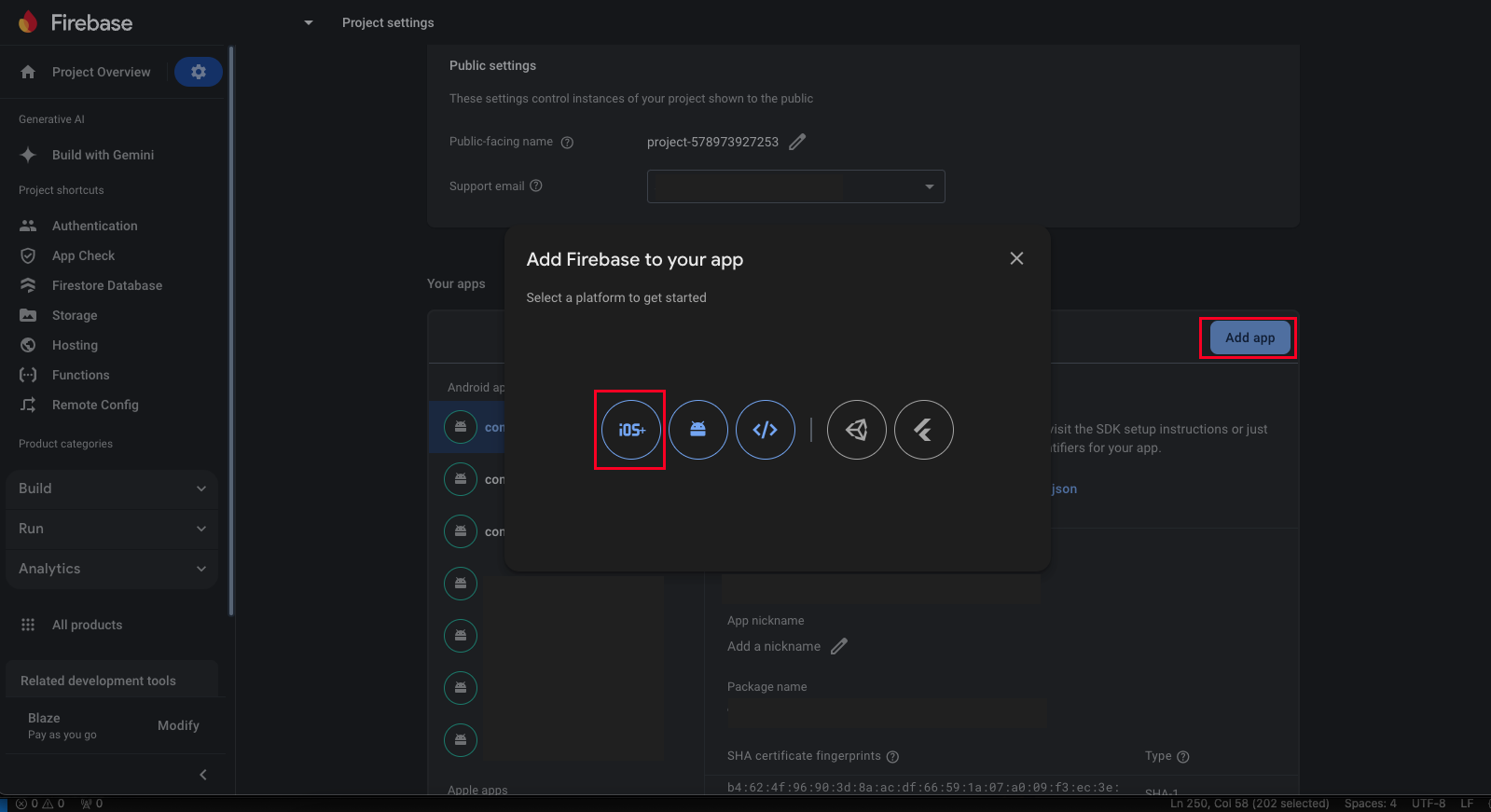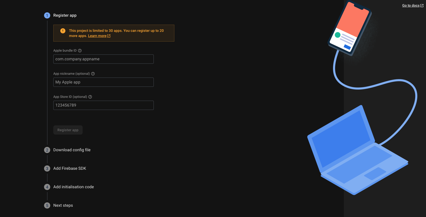 - Select the iOS option and register your app.