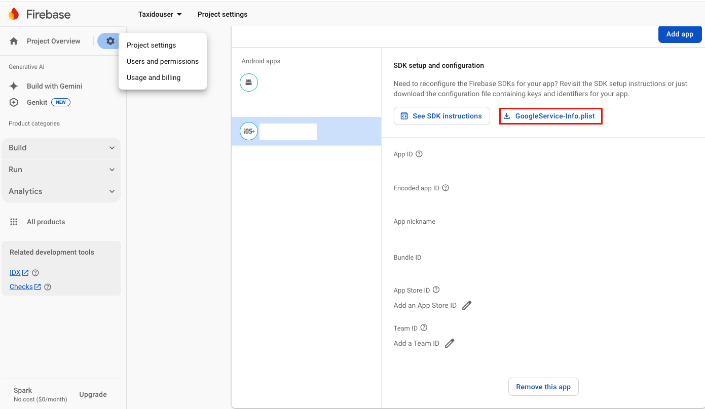 - Download the "GoogleService-Info.plist" file.