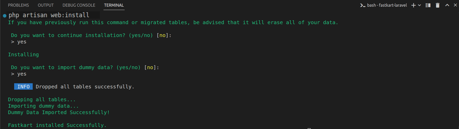 php artisan web:install
