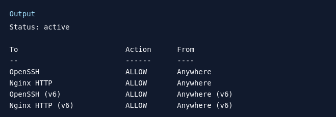 sudo ufw allow 'Nginx HTTP'