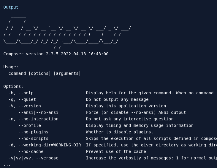 - This will download and execute an installer script that will download the latest version of Composer and install it in your current working directory.
