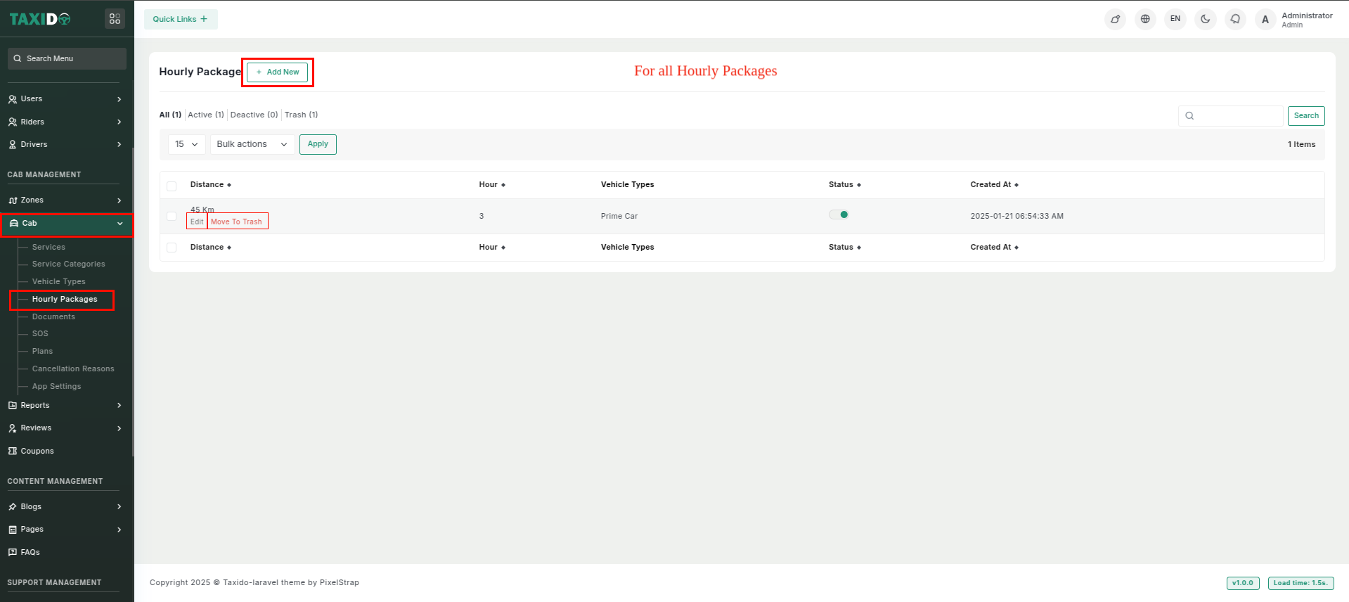 you want to Add New hourly package, click on the "Add New" or "Add Hourly Package". which will open