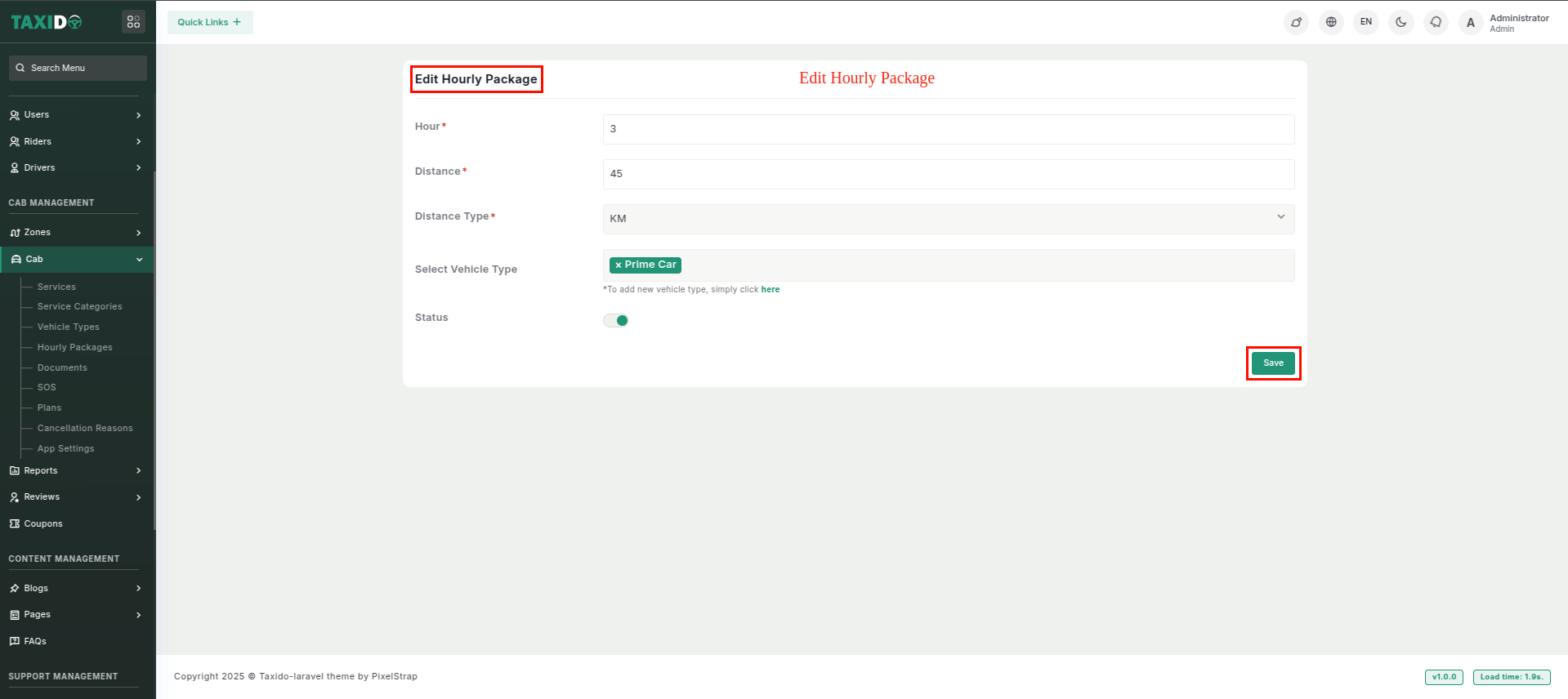 - Go to your admin panel (Laravel). On the left-hand side menu bar, click on "Cab" and then
