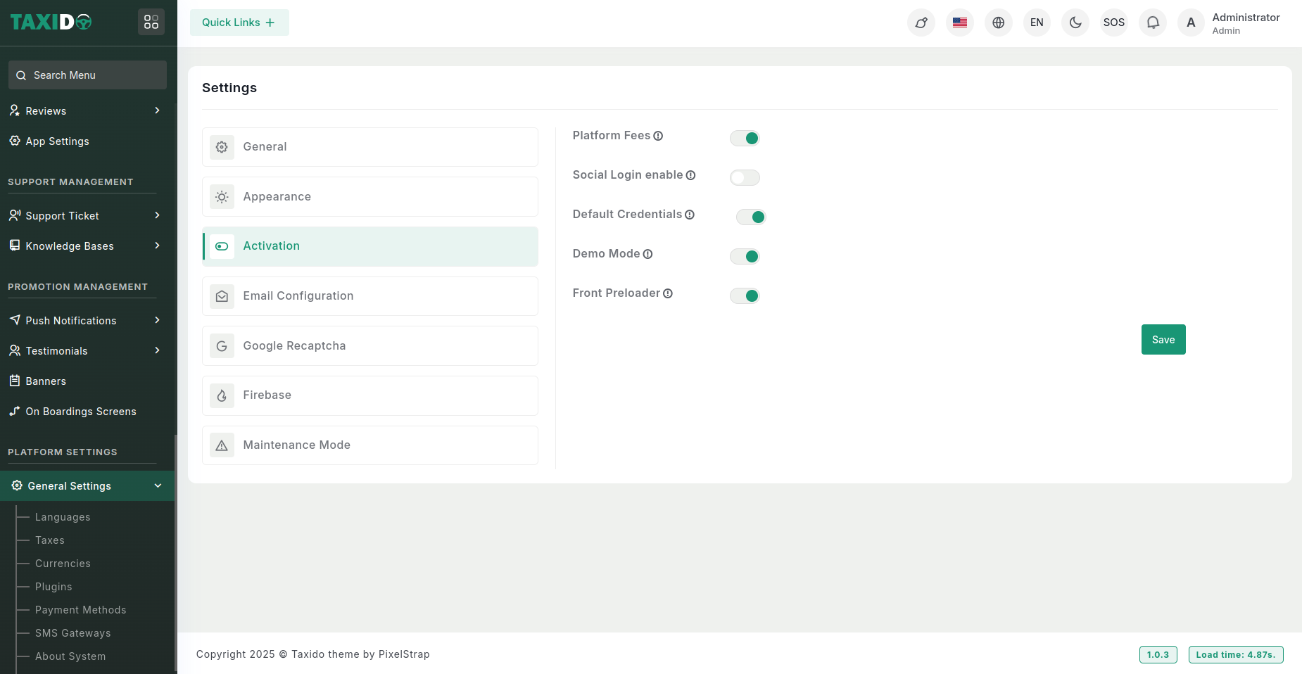 - In the Activation tab, you can configure key platform settings, with detailed guidance available in the tooltips within the admin panel.