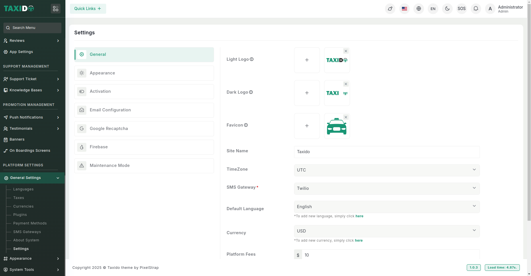 - Primary Color: Select the primary color to customize the admin panel theme.