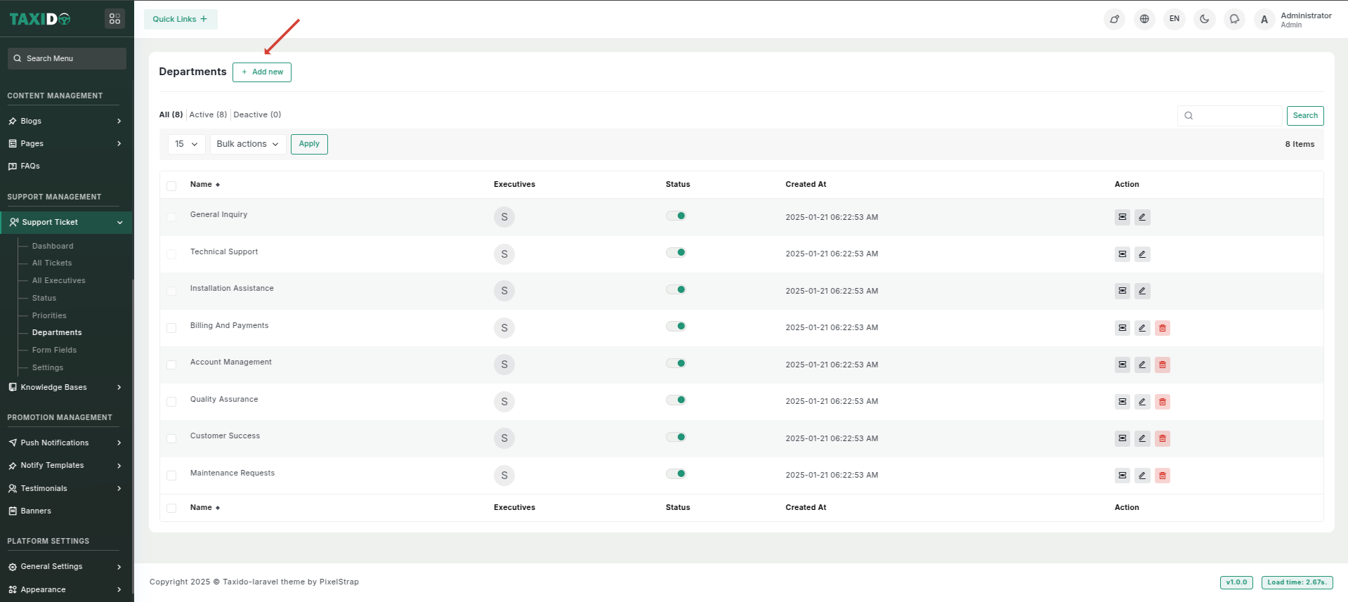 - Click on "Add New" for creating a department