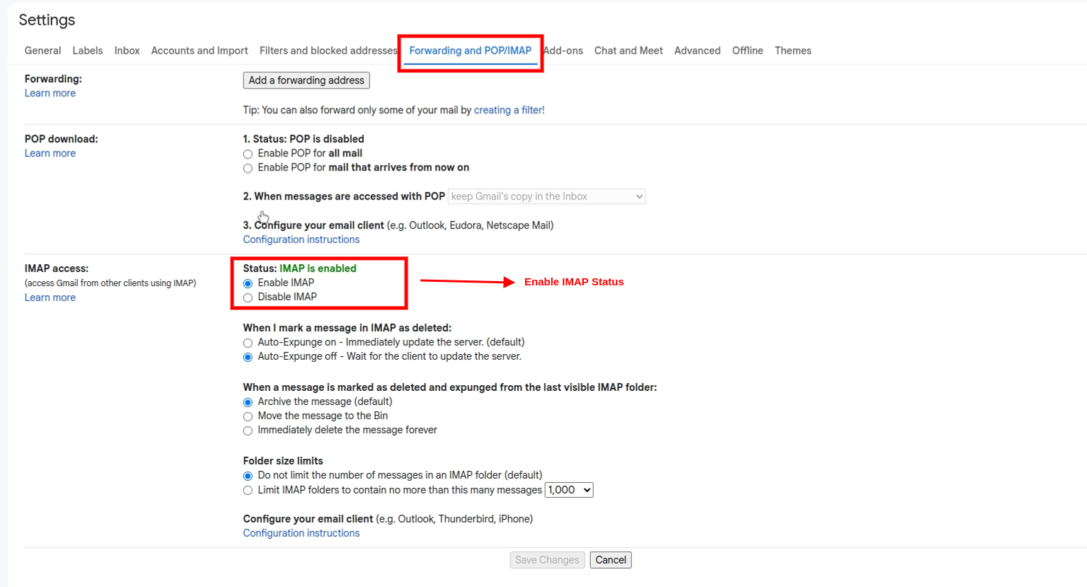 - Go to Forwarding and POP/IMAP tab.