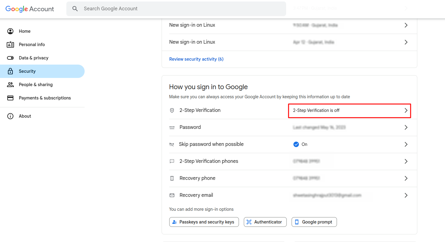 - Click on 2-Step Verification