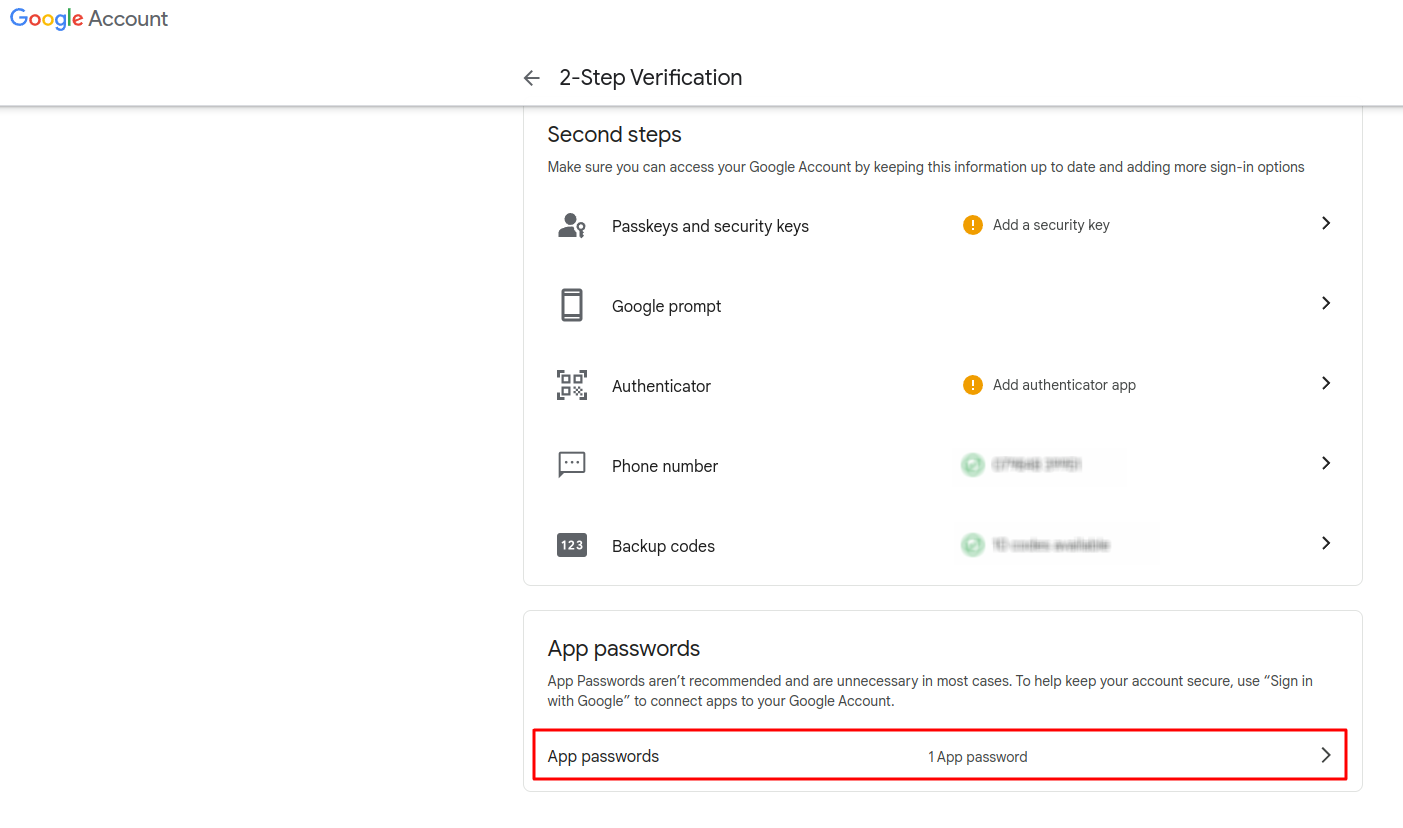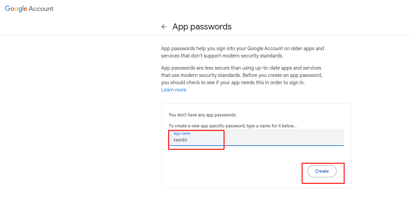To create an app password, you need 2-Step Verification on your Google Account.
