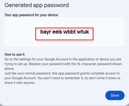 - Enter your app password in to password field