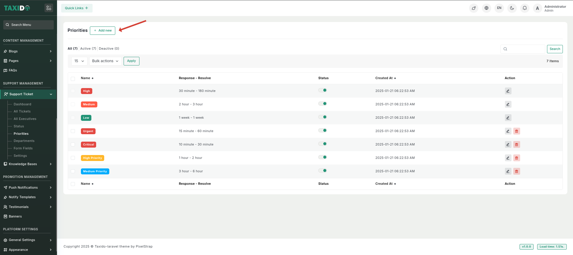 - Click on "Add New" for creating a priority