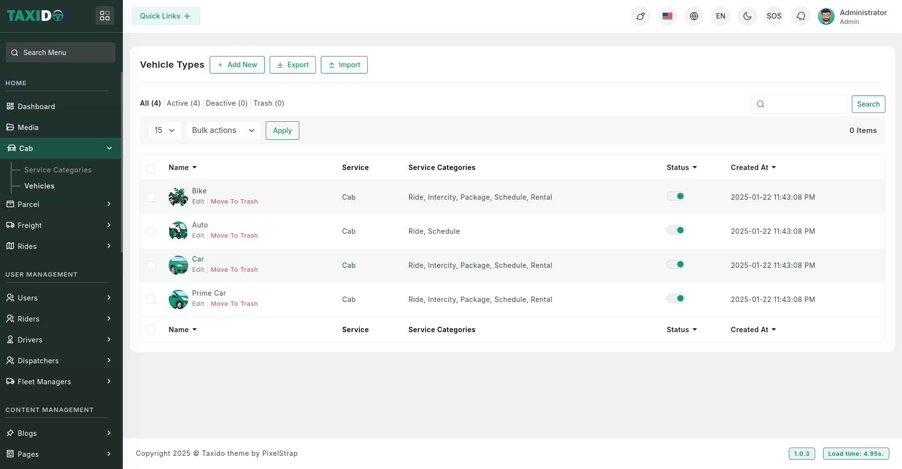 - Service Categories: Ride, Intercity, Schedule