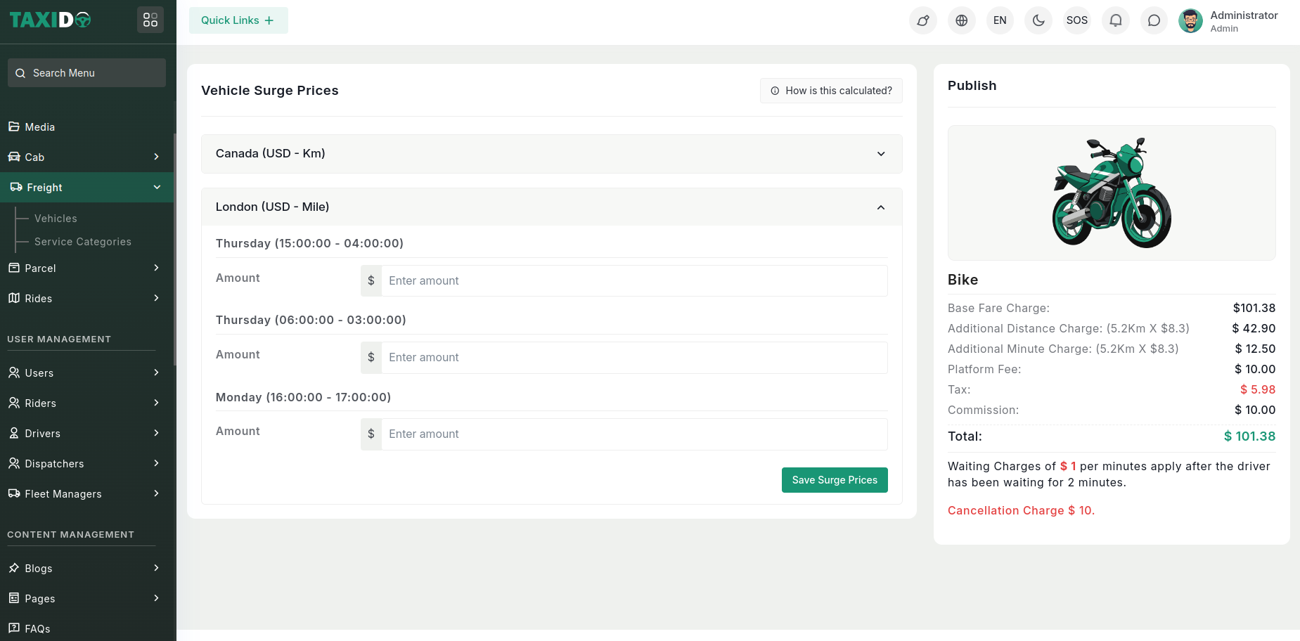 - Amount - The additional surge charge amount to be applied during the specified time slot.
