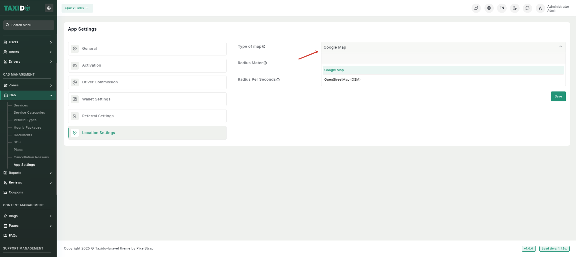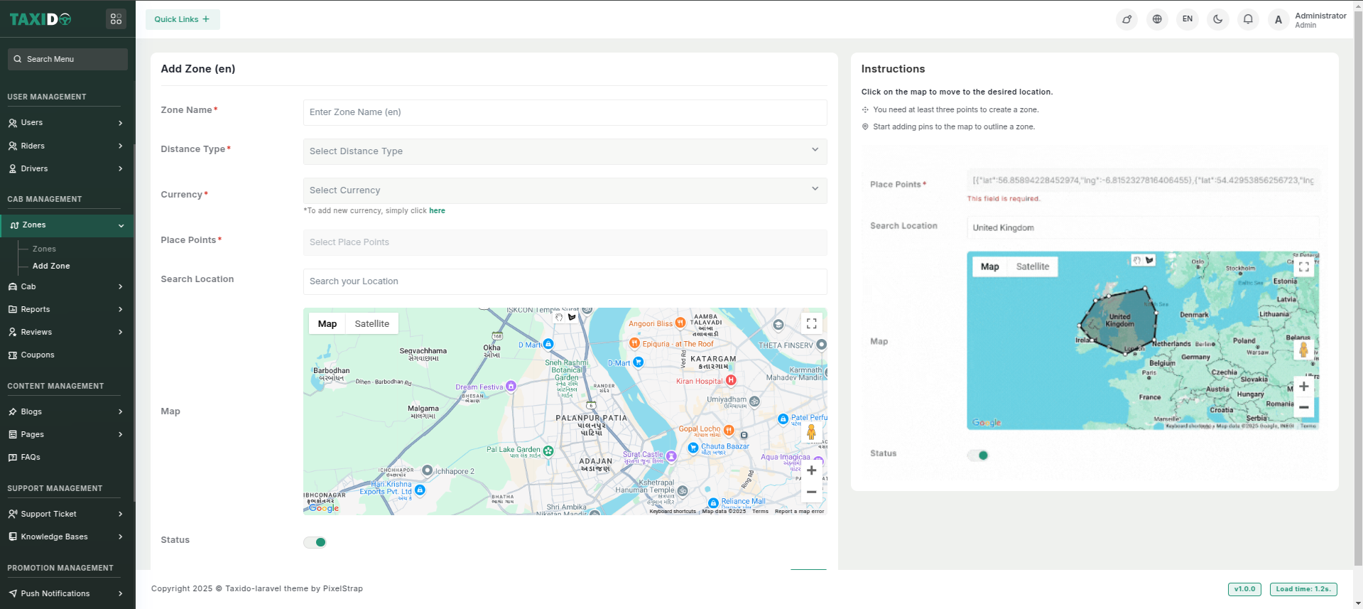 - Before creating a ride zone, ensure that you have generated and added a Google Maps API key. This key is essential for map functionalities such as displaying zone boundaries, calculating distances, and routing rides.